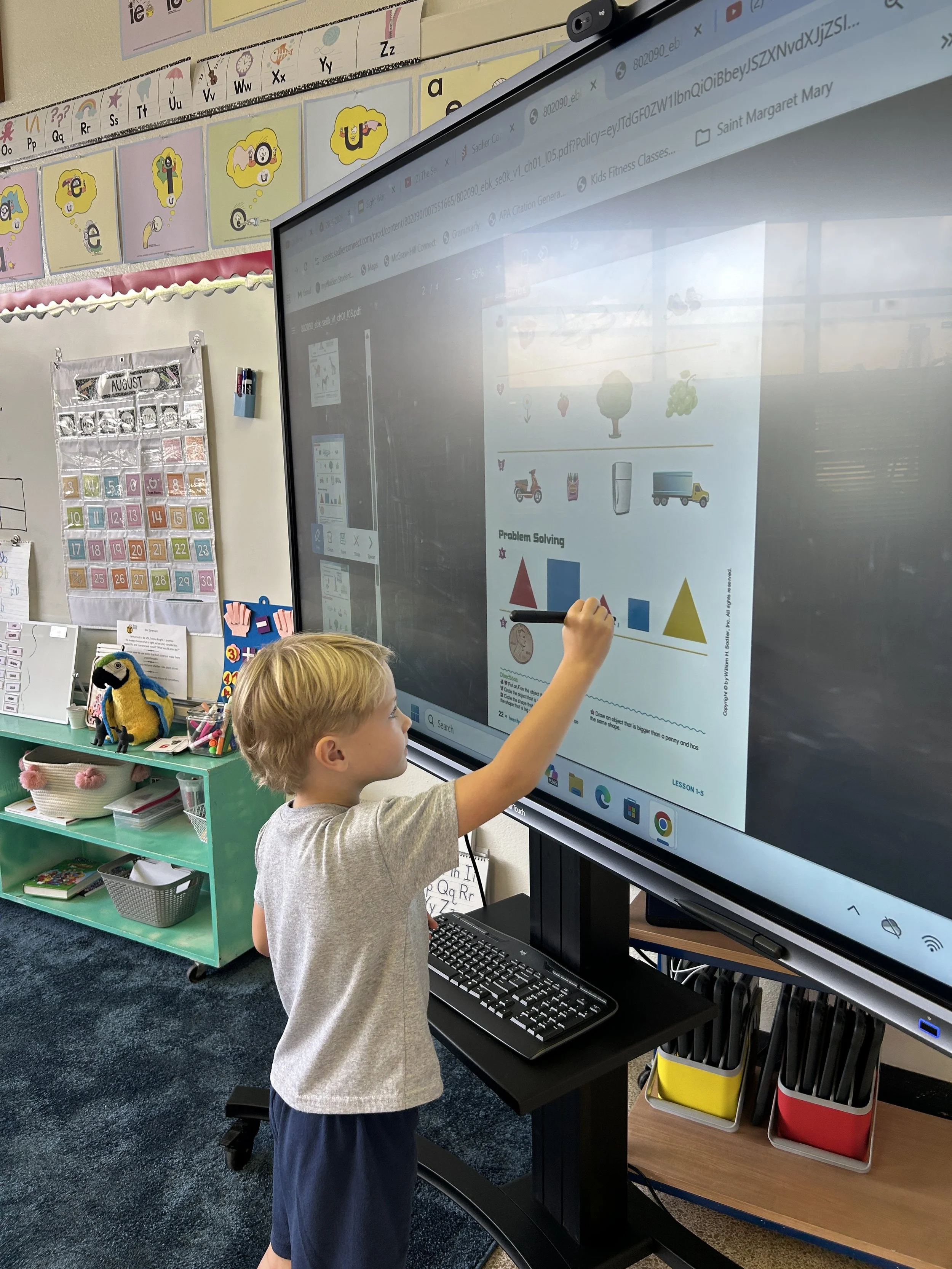 Being located in the heart of the Space Coast, technology integration is a high priority at St. Teresa Catholic School. Students in grades five through eight learn in a one-to-one environment where each child is issued a Chromebook for school use. Teachers use Google Classroom as a communication hub for lesson assignments and submissions. Furthermore, students in grades five through eight participate in a STREAM (Science, Technology, Religion, Engineering, Art, and Math) class where they learn 21st Century skills such as coding, robotics, and 3D printing. The Boland Family Learning Center is the ultimate technology-rich “classroom.” Students can work in groups by plugging in their Chromebook or iPad into a large flat panel monitor or make class presentations on our 75” ClearTouch touch screen with integrated PC and Wi-Fi. Teachers in our lower grades incorporate educational software activities with iPads in the classroom. These grade levels use SeeSaw as their communication hub for lesson assignments and submissions. Furthermore, all classrooms are equipped with SMART boards for classroom use. These interactive whiteboards provide teachers with tools for presenting creative and engaging lessons.